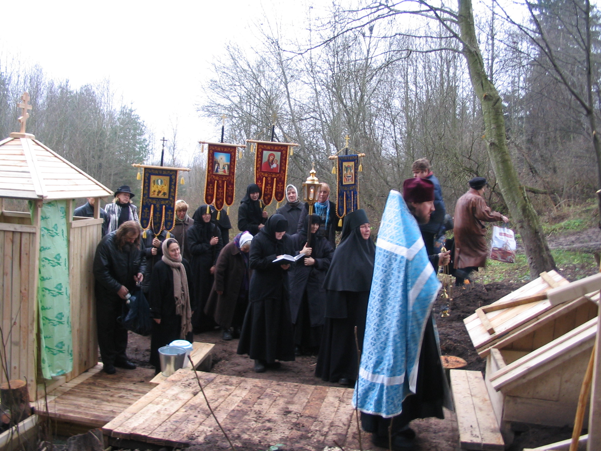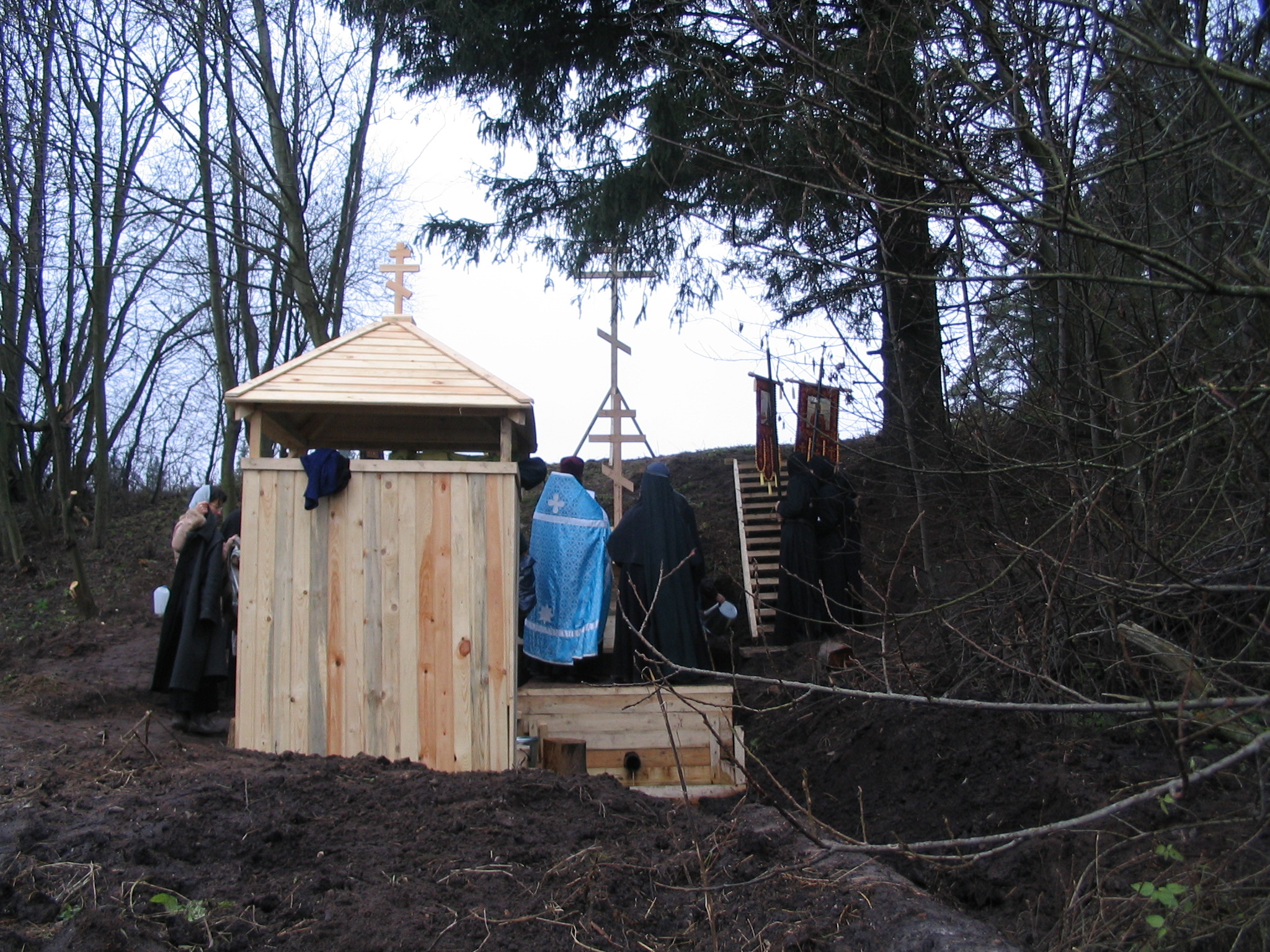 Освящение воссозданного колодца схиигум. Евпраксии, 2004 г.