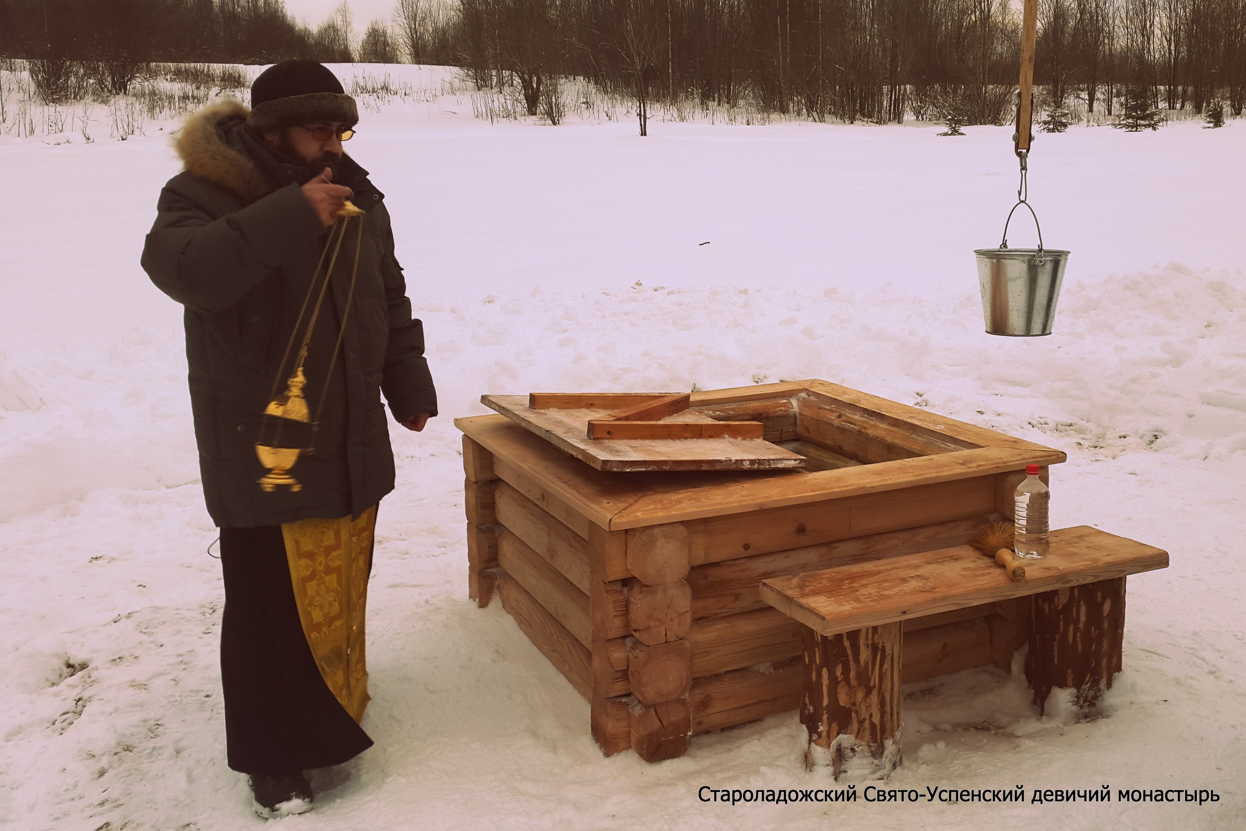 Освящение воссозданного колодца схиигум. Евпраксии, 2004 г.